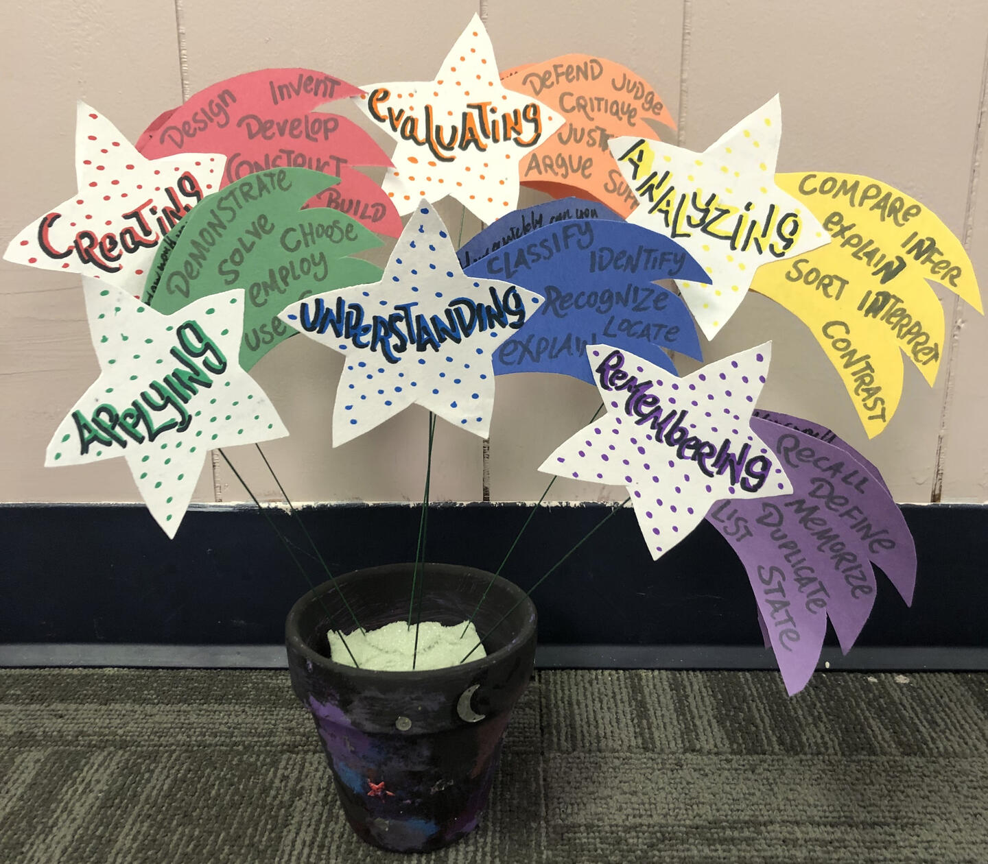 Even when we’re not at our field sites, we’re still learning important information about the theory of teaching. We made flowerpots as we learned about Bloom’s Taxonomy, but instead of flowers, I thought outside of the box and made mine shooting stars instead! The tails flip open like a booklet with additional information. -->